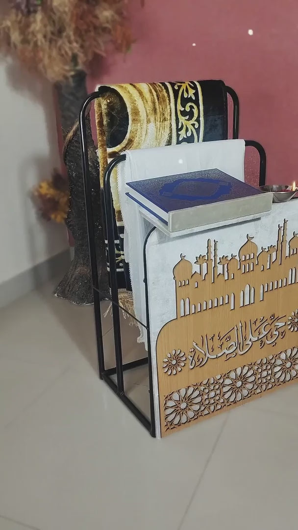 Organize your prayer essentials effortlessly with our beautifully designed Salah Stand. Crafted with detailed finishing.